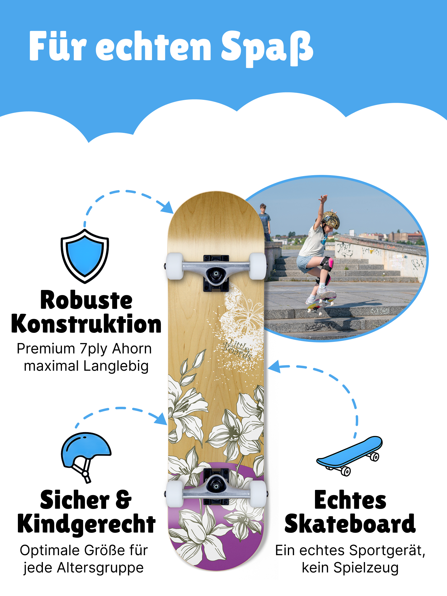 Le skateboard complet Little Boards « Flowers » est spécialement conçu pour les enfants.