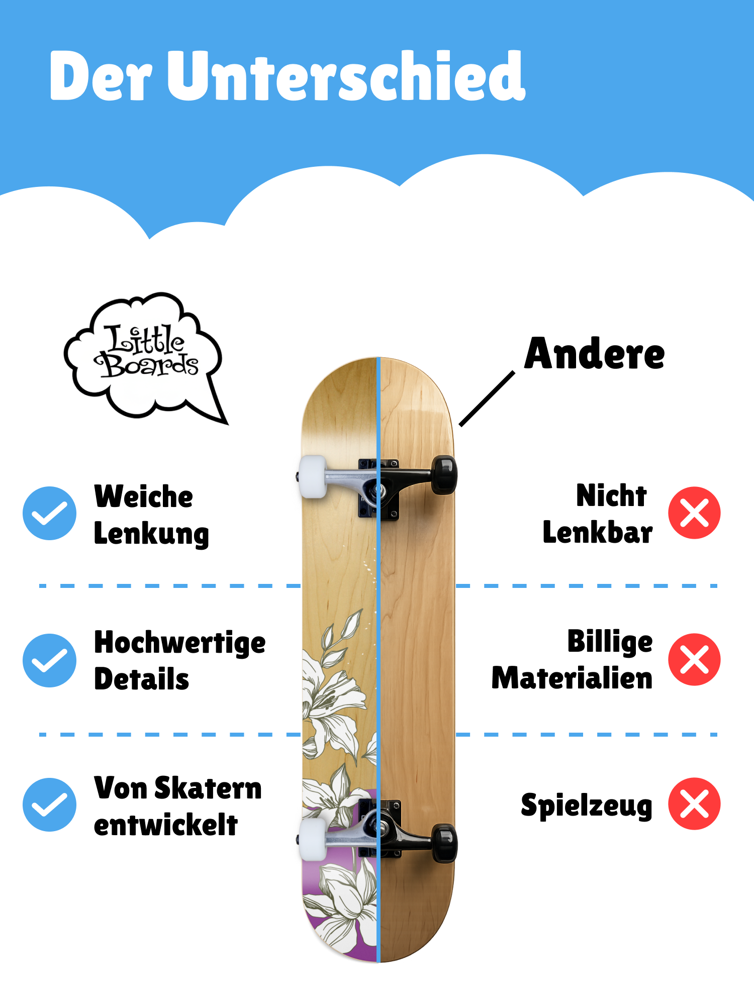 C’est pourquoi les skateboards pour enfants de « Little Boards » sont plus petits et adaptés aux besoins des enfants.