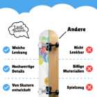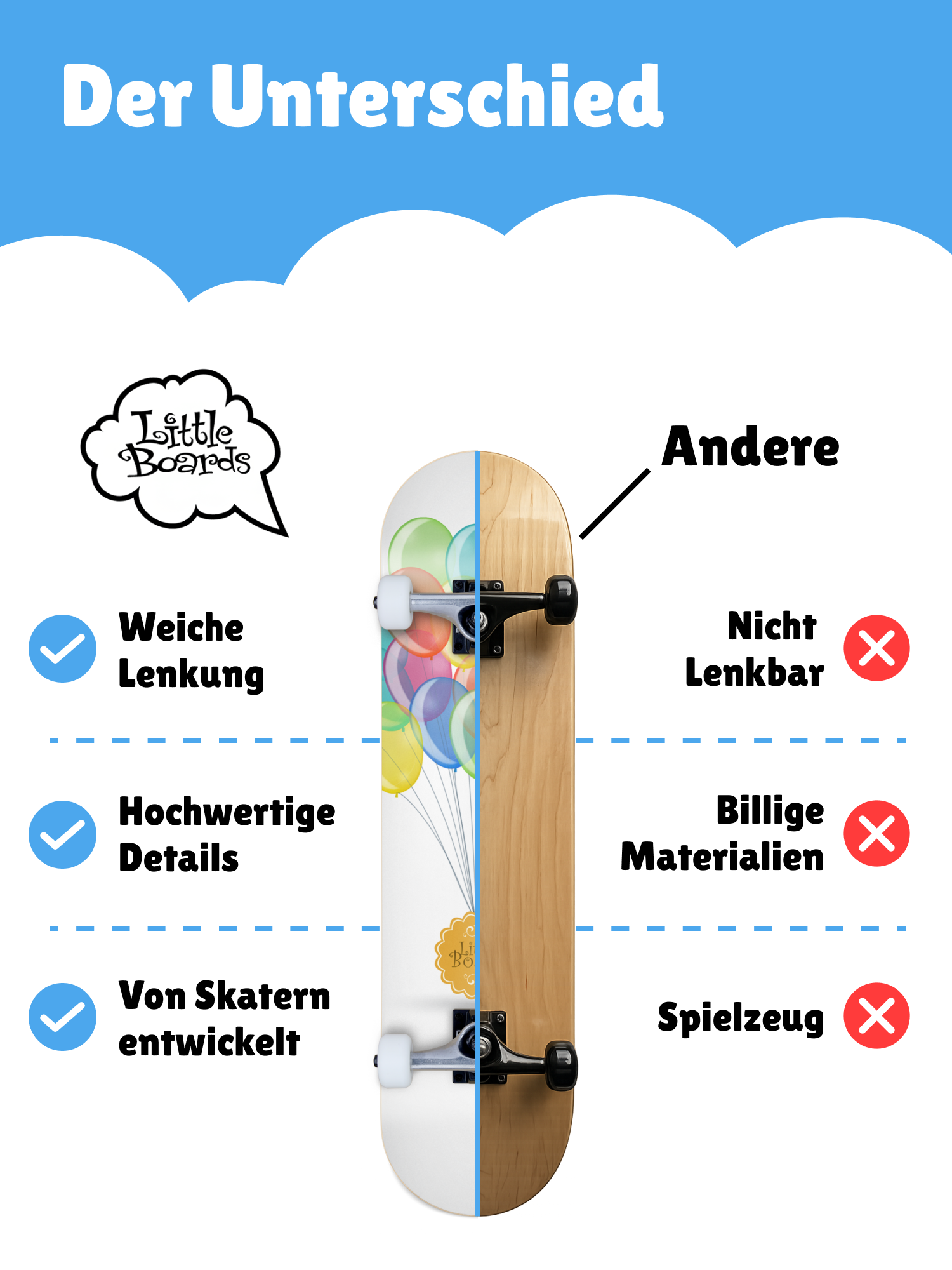 I motsetning til leketøysskateboard fra lekebutikker, tilbyr Little Boards ekte skateboardkvalitet – i mindre skala, men profesjonelt produsert. Perfekt for de første rulleforsøkene, for trygg læring og for langvarig skatingmoro.
