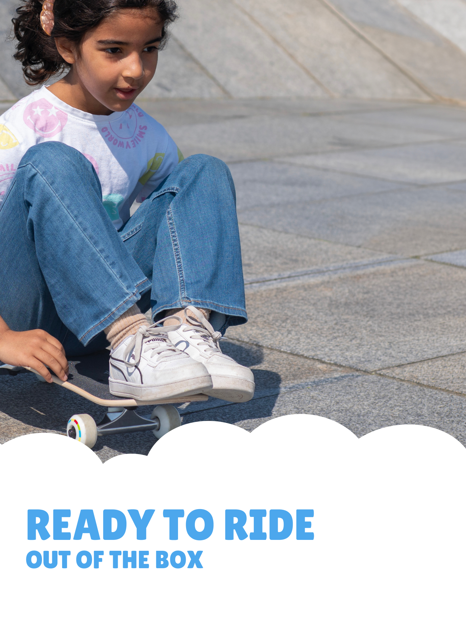 Med sine myke styreegenskaper reagerer akslene på selv små vektforskyvninger. De myke hjulene sørger for jevn og trygg rulling, selv på ujevnt underlag. Det betyr at barna alltid har kontroll og raskt utvikler tillit til egne evner.