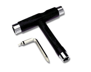 T-Tool Black Das T-Tool ist der pefekte Begleiter für unterwegs. Das Multitool kann für alle Schrauben und Muttern auf deinem Board verwendet werden. Ob für eine Achsenmontage oder auch eine Komplett Montage, das Tool ist ein ständiger Wegbegleiter. 3 / 8 Inch Sechskantschlüssel 1 / 2 Inch Sechskantschlüssel 9 / 16 Inch Sechskantschlüssel Inbuschlüssel Kreuzschraubenzieher
